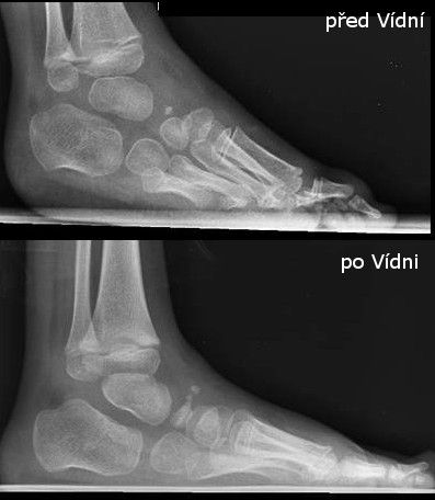 Po růstových spurtech, po 3. roce věku, nastala recidiva a nepomohlo ani cvičení dle Vojty, ani lázně. Zvýraznil se nášlap přes malíkovou hranu a dívka začala postupně chodit jen po špičce nohy.