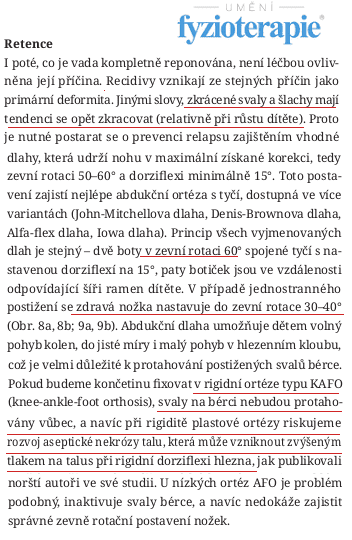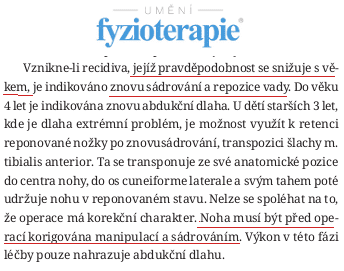 Zajímavá informace jistě je, že vada je primárně záležitost měkkých tkání. Uvolníli-se tlak tvořený zkrácenými svaly a šlachy, kosti se novému prostoru přizpůsobí.