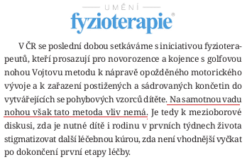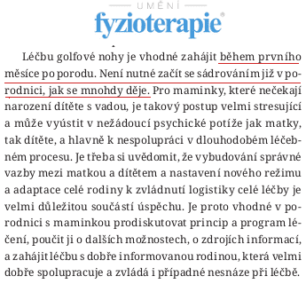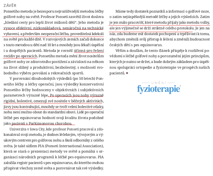 V prestižním časopise Umění fyzioterapie vyšel velmi výstižný článek MUDr. Moniky Frydrychové o vrozené vadě pes equinovarus / golfová noha.