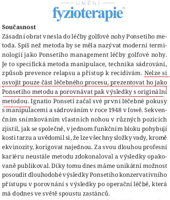 Bohužel, v České republice není postup všude dodržován, ač je Ponseti metoda lety vyzkoušena a do detailu propracována. Není výjimkou, že lékař bez dobrého výcviku nebo s malým množstvím zkušeností způsobí na malých nožkách nevratné deformity tzv. complex clubfoot.