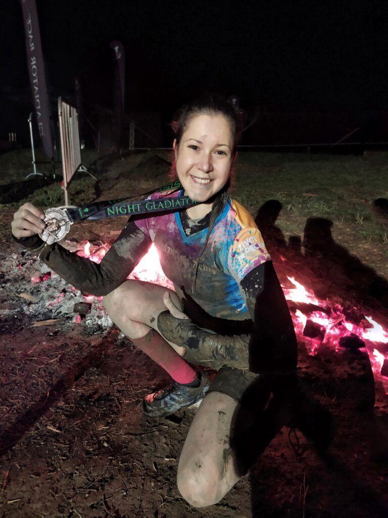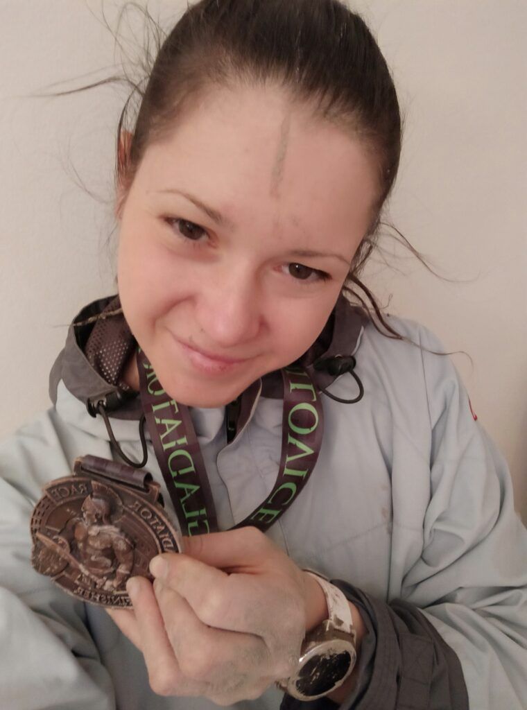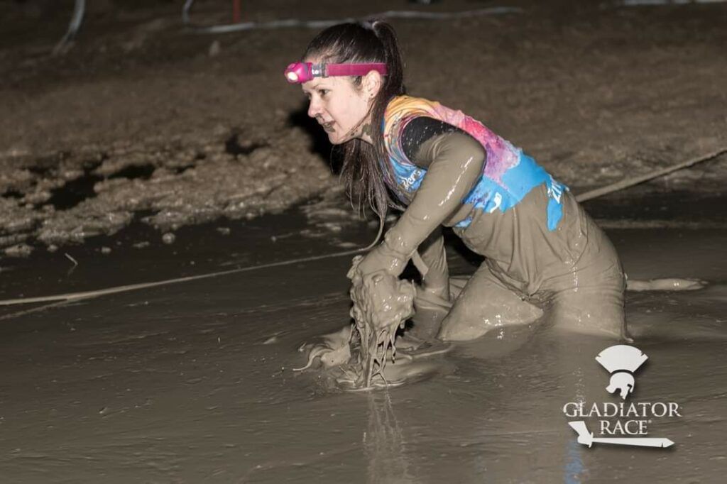 Na trati mně čekalo bahno, hodně bahna, šplh, klády, přenášení pneumatik, běh, strmé kopce, voda, přeskakování ohně, lanové sítě, trestné angličáky…… bylo to výživné, ale pro holku, co miluje adrenalin a výzvy, parádní závod.