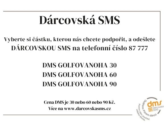 DĚLÁME TO DOBŘE ? Jestli si myslíte, že ANO podpořit nás můžete těmito způsoby: jednorázovou DMS a to ve tvaru DMS GOLFOVA NOHA 30, 60 nebo 90 a to na číslo 87 777 trvalou DMS a to ve tvaru DMS TRV GOLFOVA NOHA 30, 60 nebo 90 a to na číslo 87 777 Cena DMS…